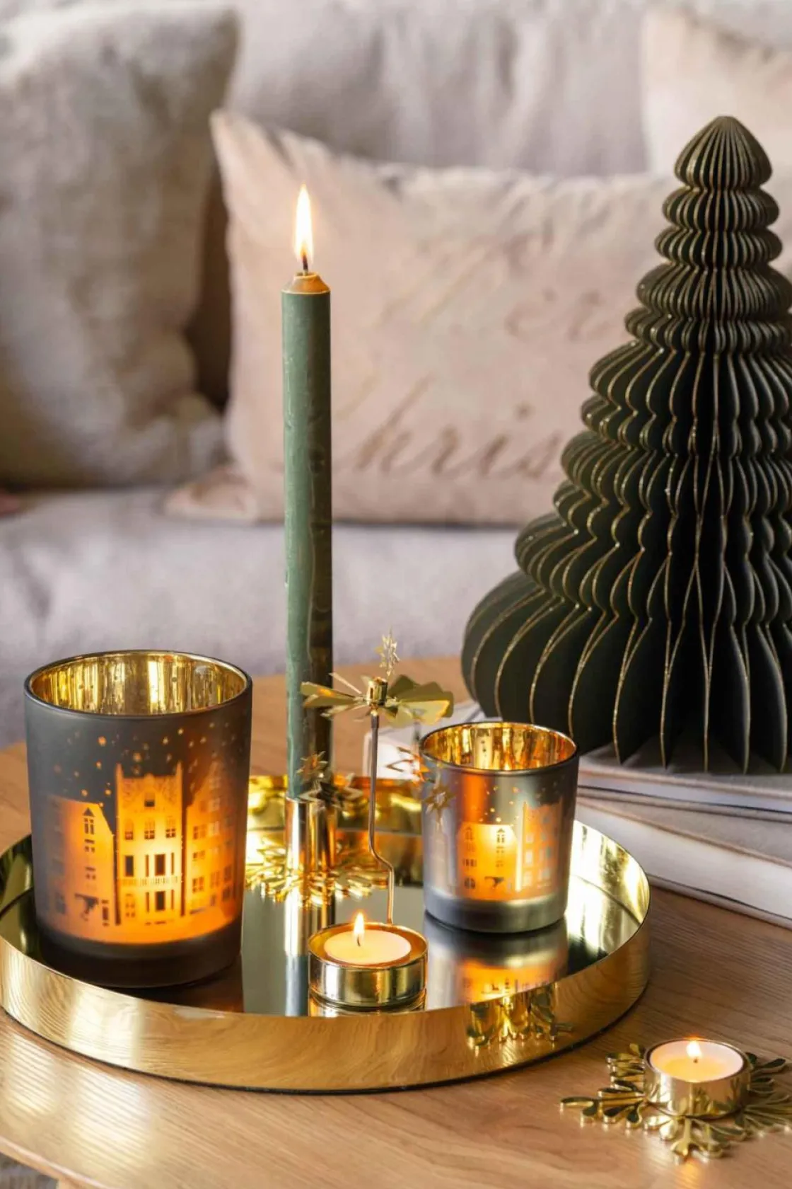 Det er noe helt spesielt med jul i byen. Fantastiske lys og god stemning! Ta med den fine julestemningen inn i hjemmet med den stilige telysholderen Amsterdam. Den har grå, matt finish på utsiden og blank innside som gjør at det fine by-motivet skinner ekstra godt. Telysholderen finnes i to størrelser og ser flotte ut sammen på et lysfat med annet dekor.