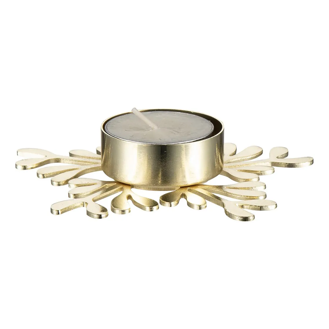 En telysholder i gull med vakre detaljer som kan minne om blomsterrøtter. Dekorer på et lysfat med andre lykter og figurer eller la den spre røttene sine over middagsbordet i julen.