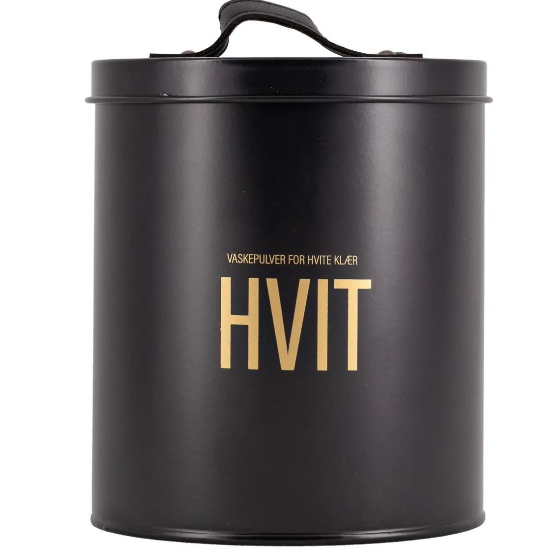 Praktisk og stilig vaskepulverboks til hvitt tøy. Håndtaket på lokket av skinn gir boksen det lille ekstra. Hold vaskerommet ryddig med oppbevaringsbokser.