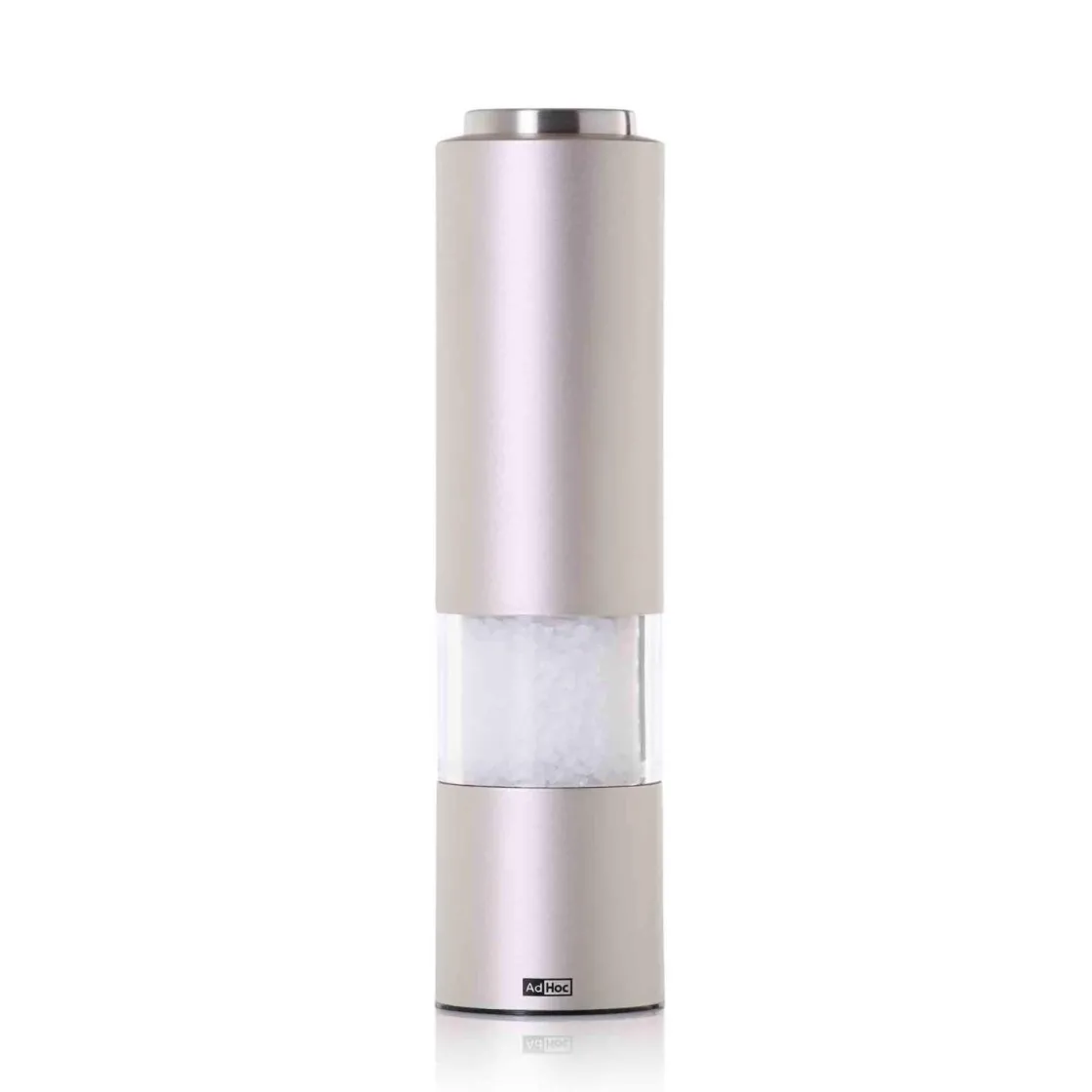 Høykvalitets elektrisk kvern i akryl og rustfritt stål med CeraCut® keramisk kvernhus. Justerbar kverningsgrad og enkel betjening med knappetrykk. Inkluderer LED-lys og aromabeskyttelseshette, drives av 6 AAA-batterier, som er inkludert. Rengjør utsiden med en lett fuktet, myk klut og tørk deretter med en tørr klut.