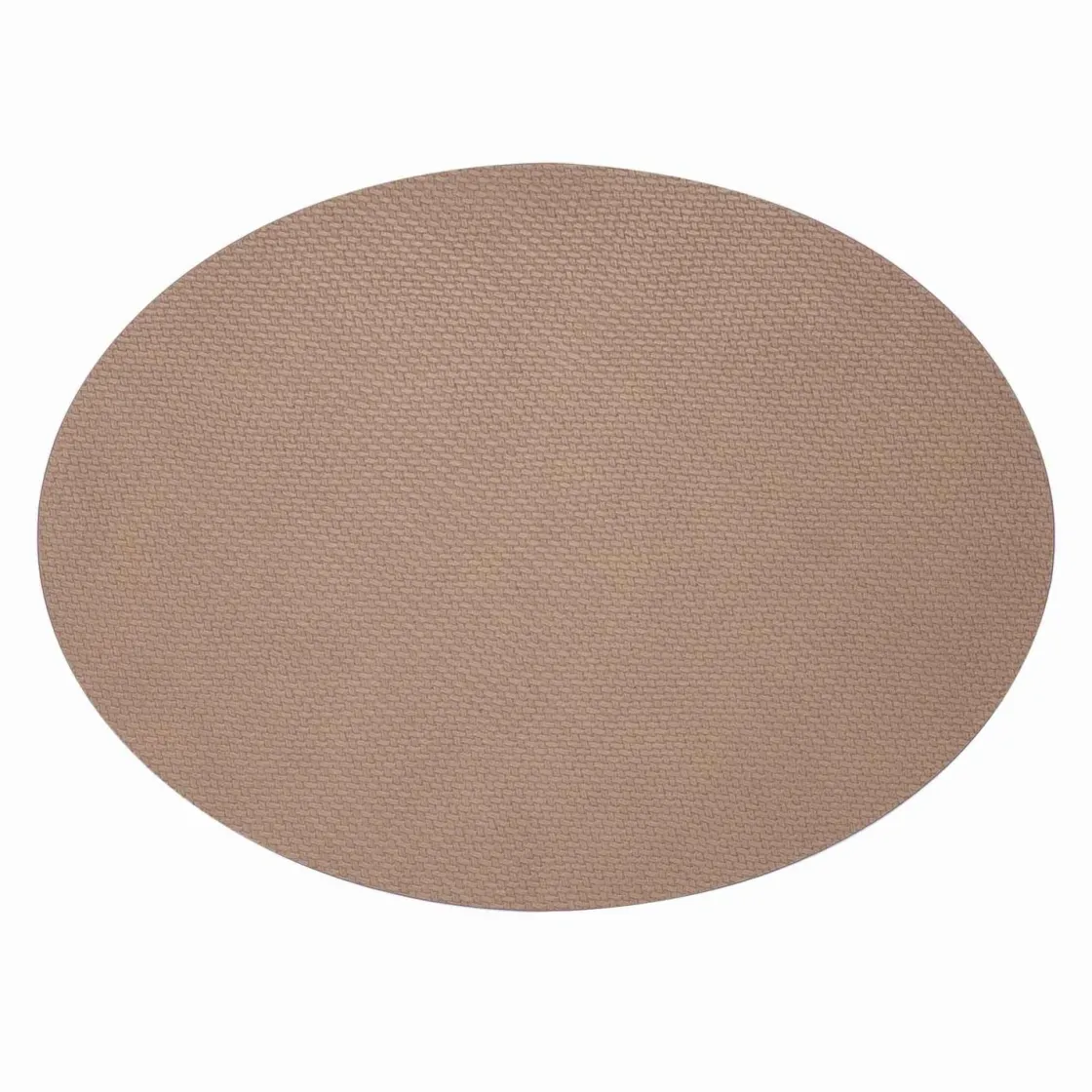Oval dekkebrikke med vevet struktur og som tåler både hverdagsmiddag og gjestebesøk. En dempet brunfarge gjør det enkelt å kombinere med servise i naturtoner, farget glass eller lyse tekstiler. Brikken beskytter bordflaten og gir samtidig en lun base for måltidet.