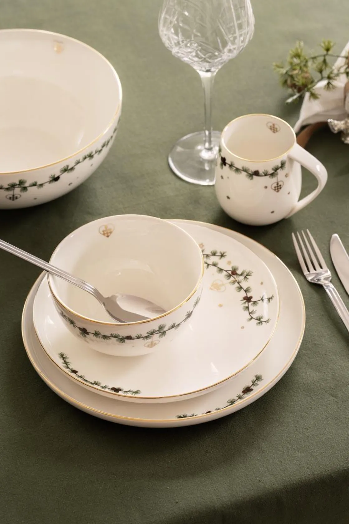 Ensfarget duk i en stødig og lun grønntone, i bomull, som faller pent over bordkanten. Like fin til hverdagens middager som til helgens små sammenkomster. Matcher enkelt med servise i nøytrale toner, men gir også god kontrast til blomster og levende lys.