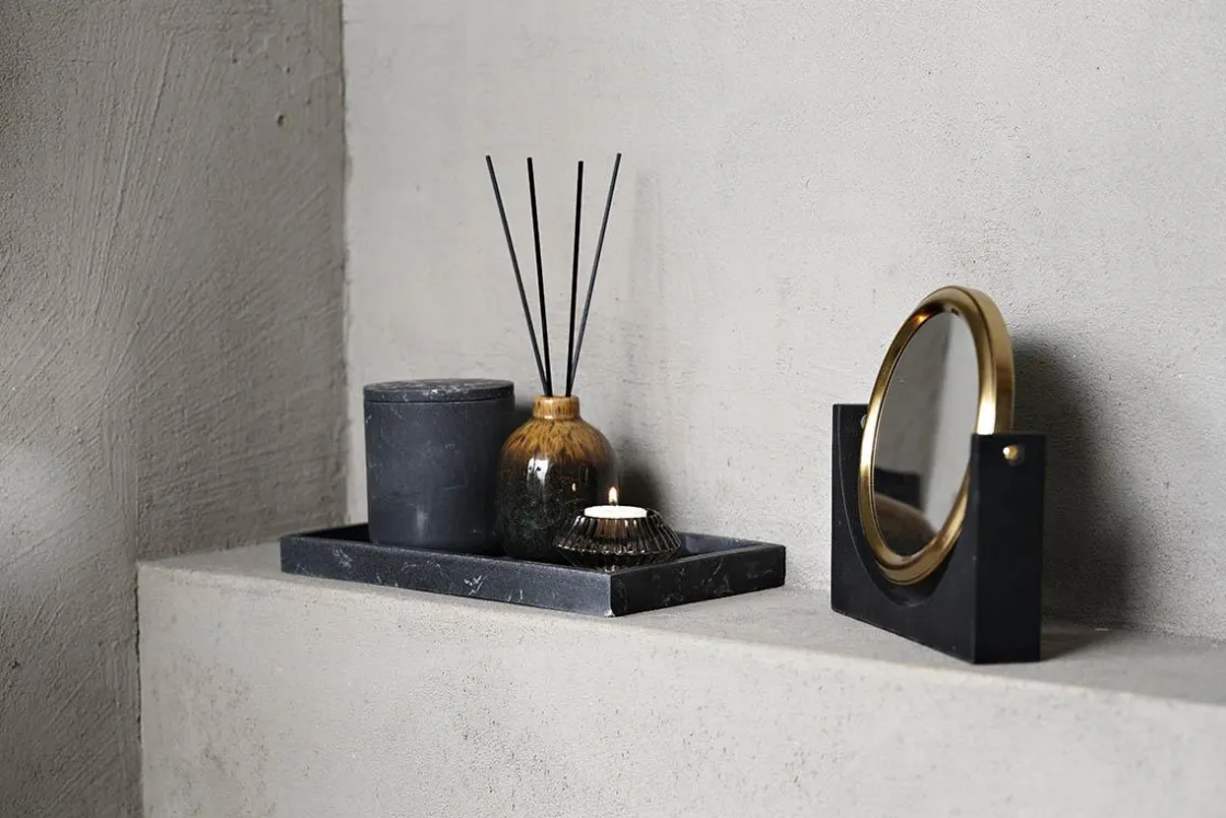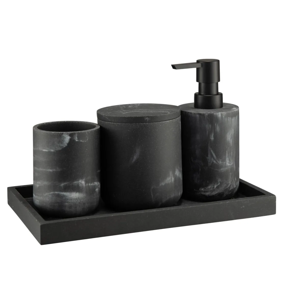 Fat i sort marmorfinish, perfekt til å for eksempel ha duftlys eller romduft på! Fresh opp badet med vår stilige baderomsserie i marmorfinish, nå også i en herlig