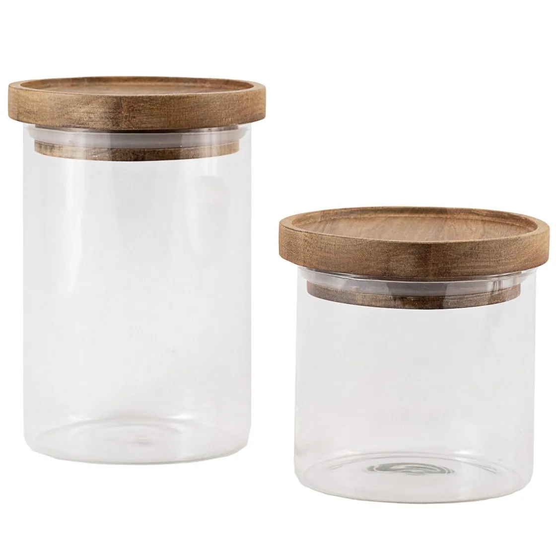 Praktisk og fin oppbevaringskrukke i glass og akasietre. Perfekt til oppbevaring av tørrvarer og lignende. Plasser sammen med for et komplett uttrykk.