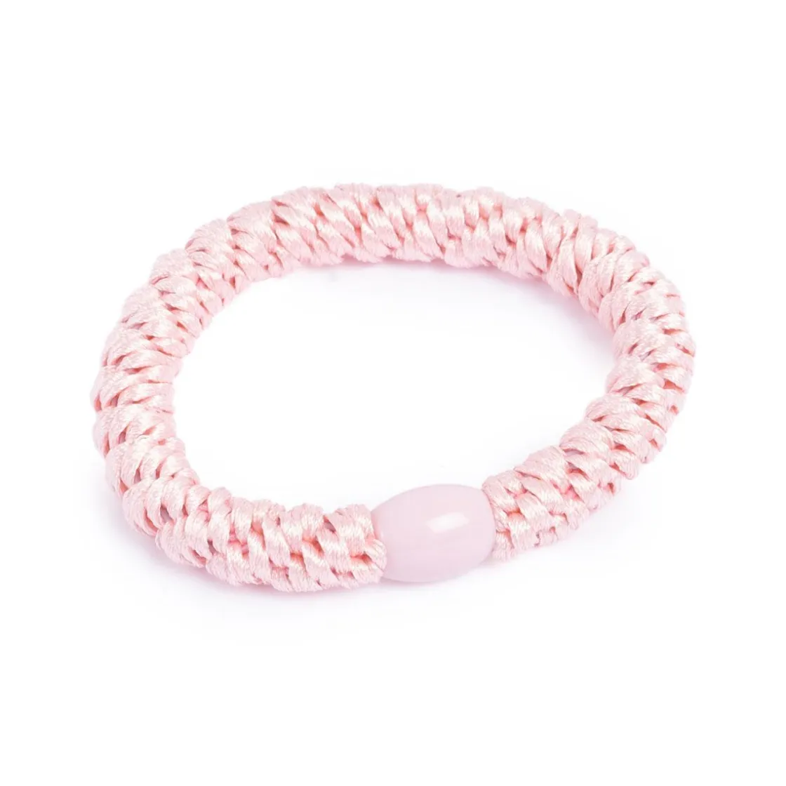 Hårstrikk i rosa, en enkel og praktisk detalj som holder håret på plass med stil. Perfekt for hverdagsbruk.