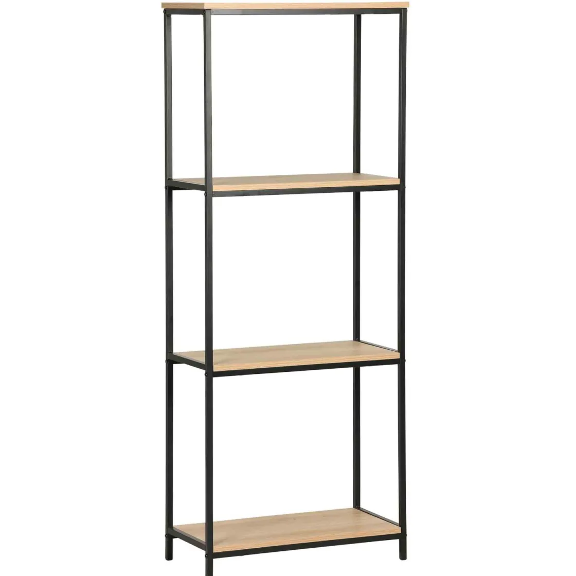 Med sin sorte metallramme gir denne hyllen et moderne og tidløst uttrykk som passer perfekt i skandinaviske hjem.