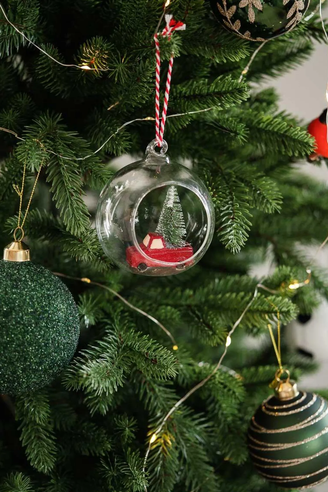 Lag ditt personlige juletre med i ulike farger og mønstre, eller slik som denne kule julekulen med bil og juletre inni. Kombiner gjerne forskjellige typer for en gøyal og fin vri på den klassiske moderne julestilen!