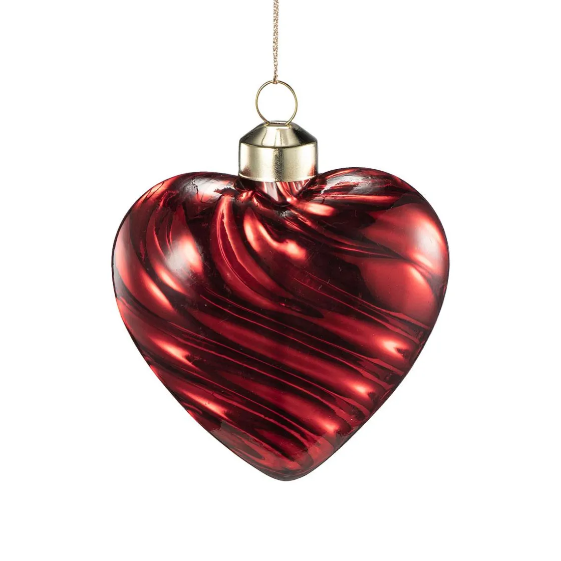 Et dyprødt hjerte med svingende mønster i glass som gir nydelig liv og dybde til juletreet. Heng det alene eller sammen med våre andre for et helhetlig uttrykk. Formen gjør det også fint å bruke i vinduet eller på dekorfat i julen.