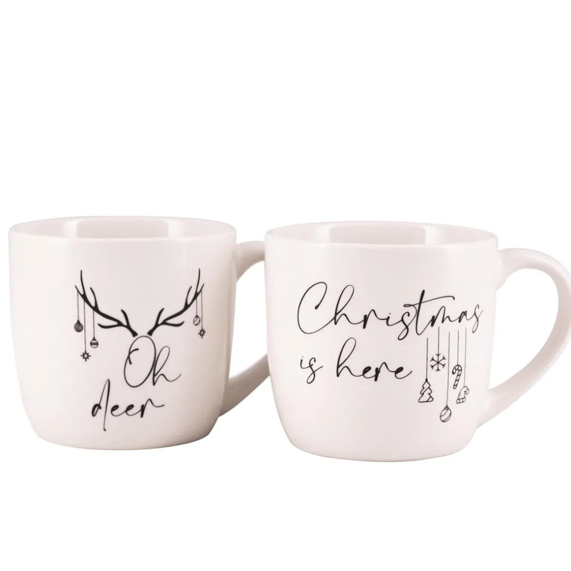 Nydelige hvite krus med julemotiv. Koppene er med på å skape julestemning i hjemmet og passer perfekt til morgenkaffen hele adventstiden og julen.