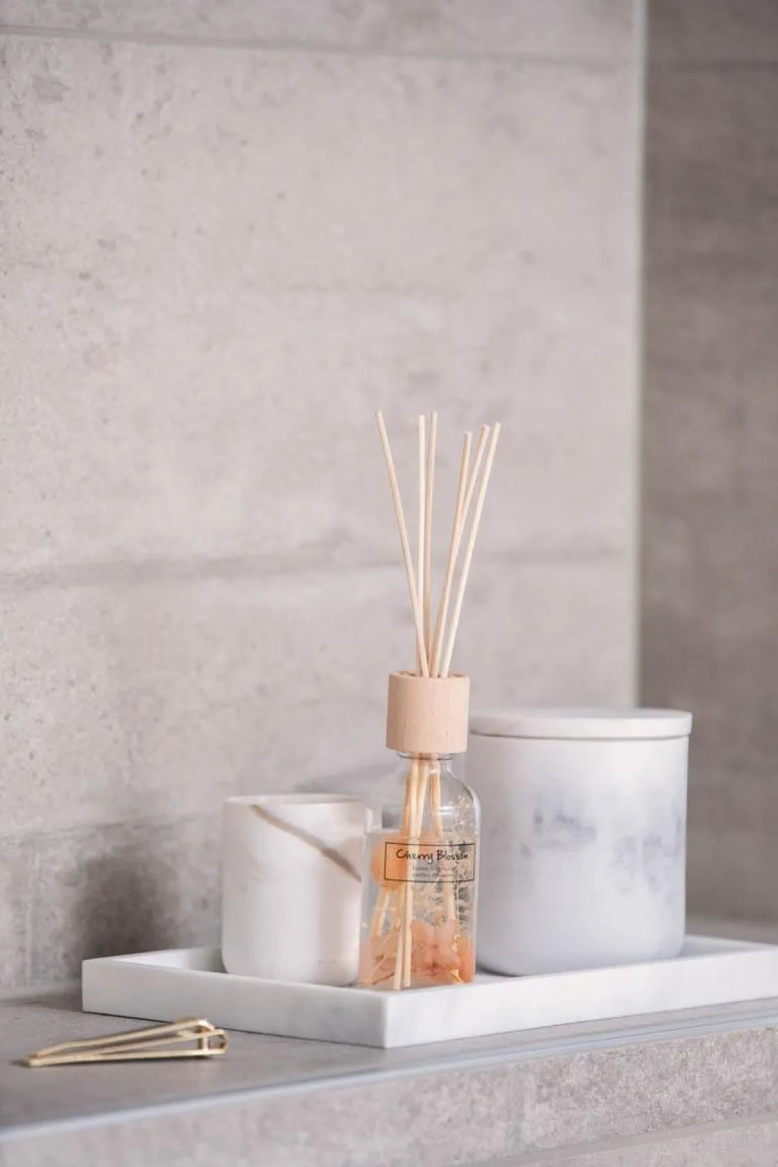 Krukke i marmor hvor man for eksempel kan oppbevare smykker, q-tips, bomullspads eller andre småting. Sett den på et fat på badet eller på kjøkkenet og se hvor enkelt du kan friske opp!