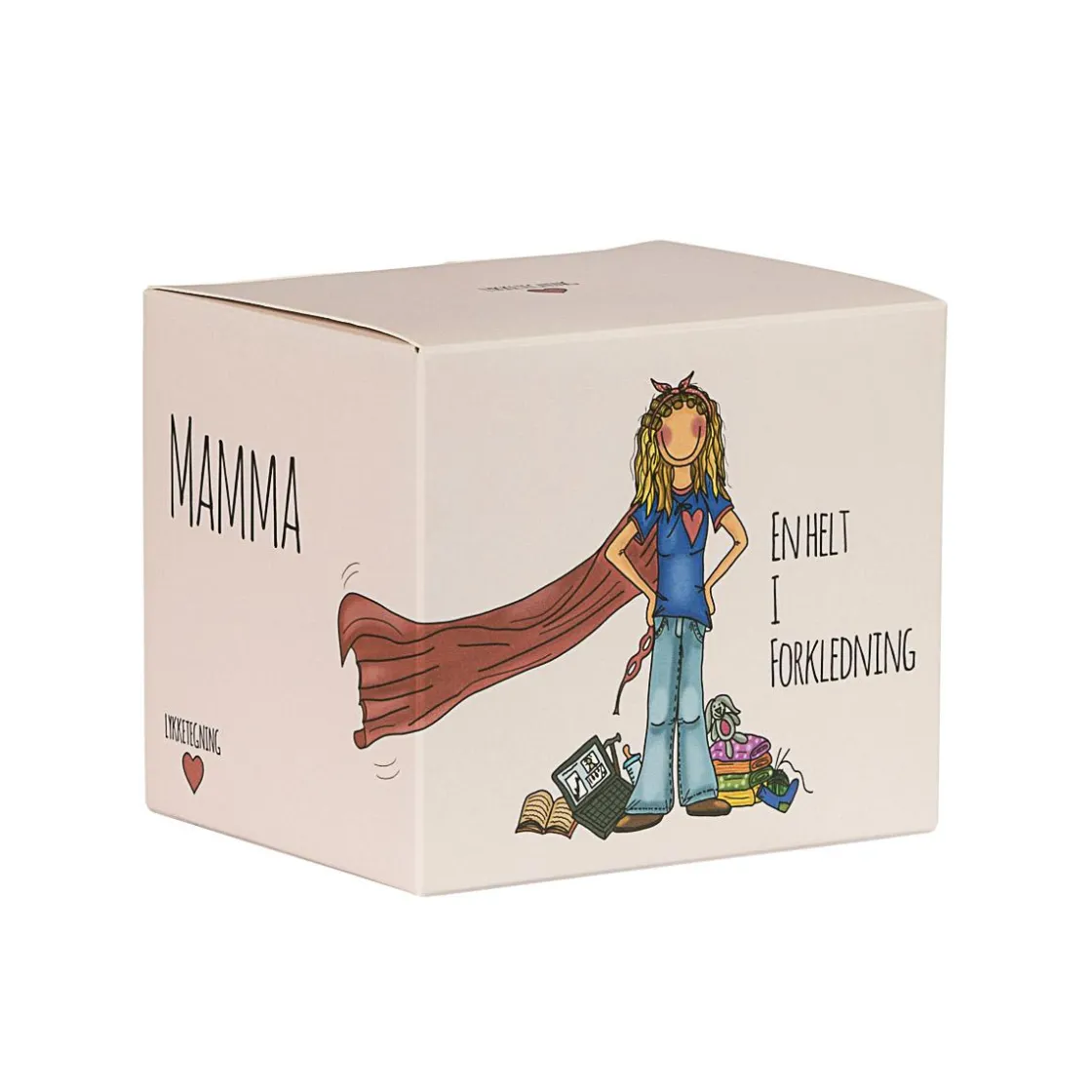 Dette er en veldig søt kopp med en hyllest til alle mammaer. «En helt i forkledning» synes i hvert fall vi er en god beskrivelse på mange mammaer der ute, og som fortjener en liten oppmerksomhet. En perfekt gave til morsdag eller bursdag. Eller hvorfor ikke bare som en hyggelig overraskelse?