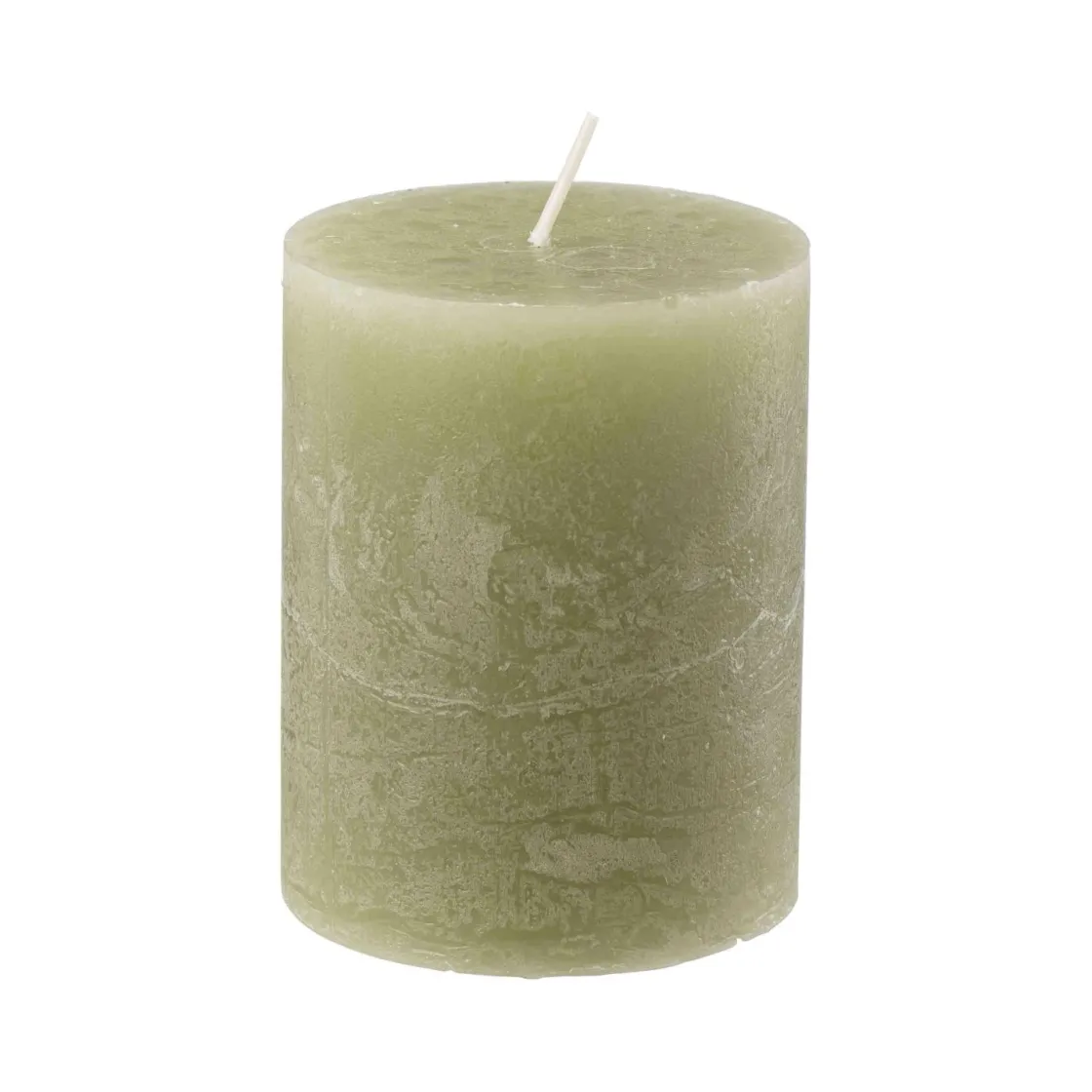 Kubbelys i parafinvoks med rustikk overflate. Den grønne tonen passer like godt i vårens borddekking som til lune høstkvelder.