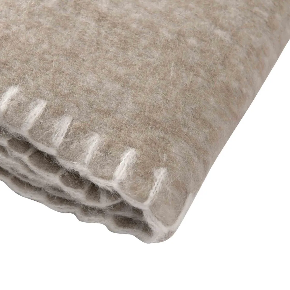 Delikat og mykt pledd i ullblanding i en nydelig beige farge som passer i de fleste hjem. Kryp opp i sofaen når høstmørke sniker seg på og hold deg varm med pledd og en god kopp te.