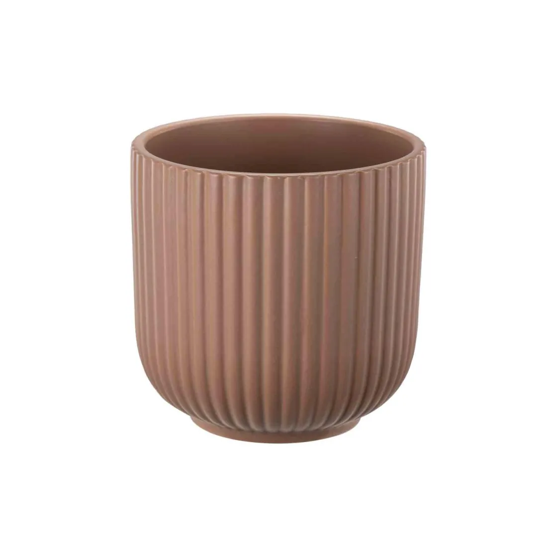 Tidløs og elegant brun blomsterpotte med riller som gir et moderne uttrykk. Den er laget av keramikk i en varm fargetone som passer perfekt inn i både klassiske og moderne interiører.