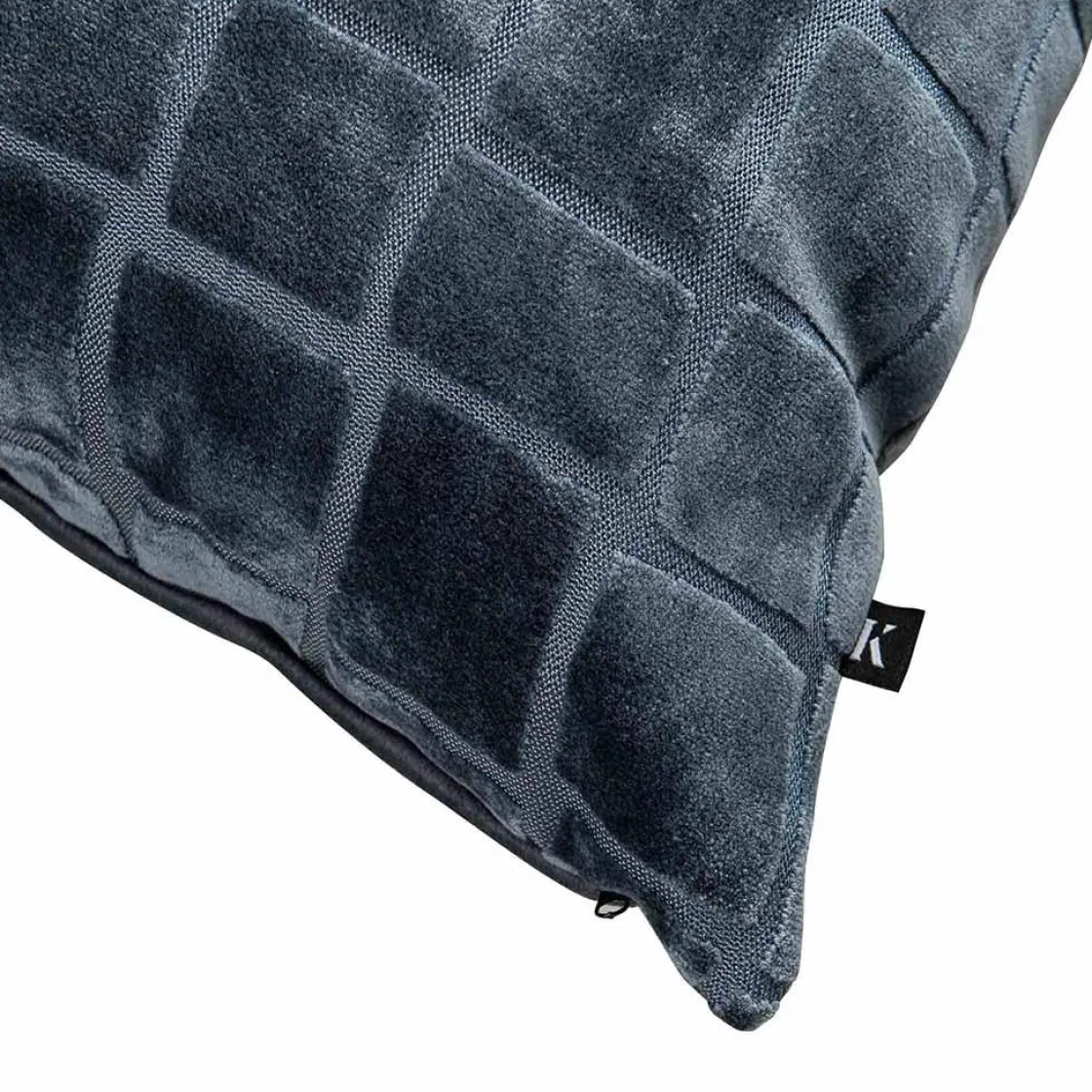 Et trendy putetrekk i velur med tekstur og markerte linjer i firkantmønster. La puten skille seg ut ved å kombinere den med nøytrale puter, eller sett den sammen med farger som harmonerer godt.