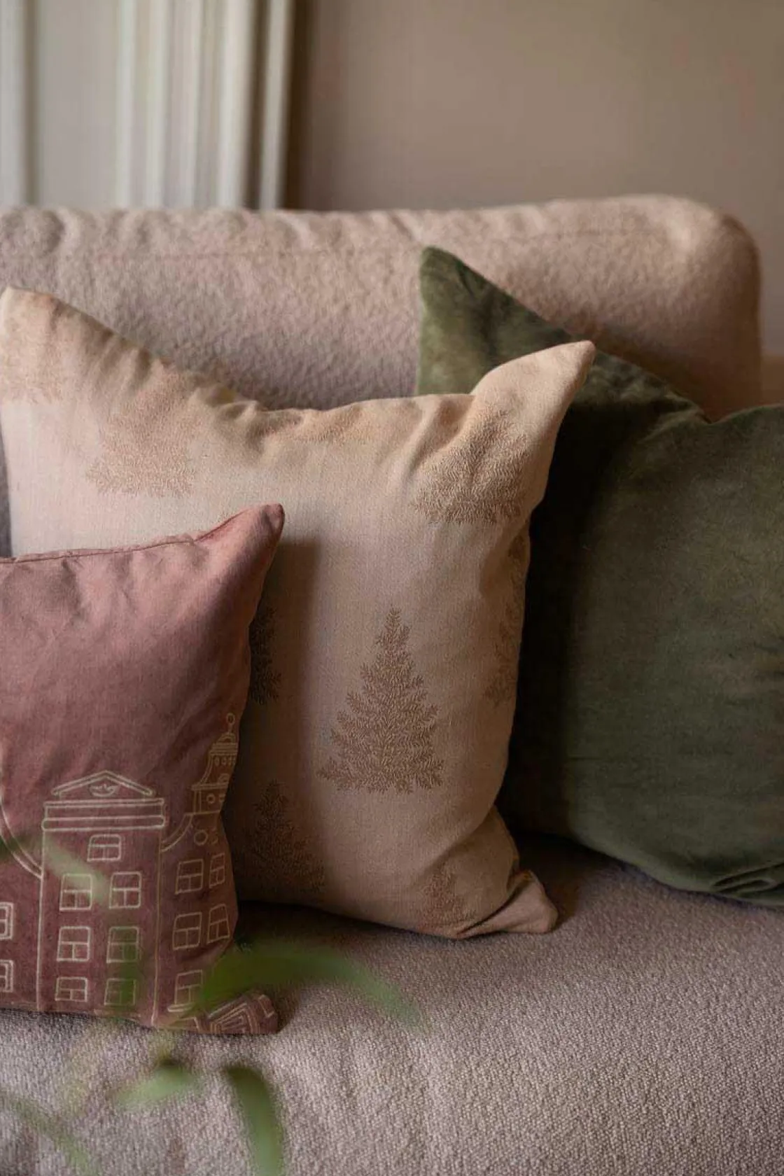 Et flott putetrekk i beige, med diskre grantre motiv. Dette putetrekk er monokrom, men byr på små detaljer, slik at du kan kombinere putetrekket med både grønne trekk for mer julefølelse eller andre nydelige farger for en mer nøytral stil.