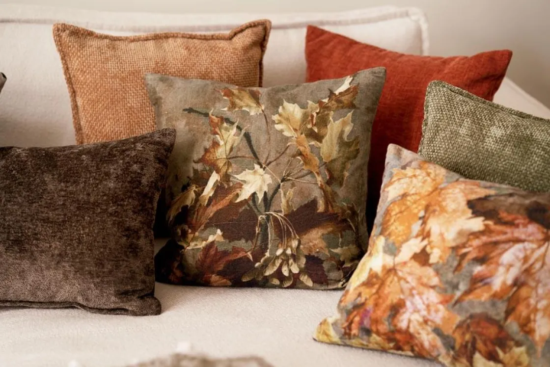Skap en lun høststemning i hjemmet ditt med dette myke velurputetrekket, med et vakkert løvmotiv.
