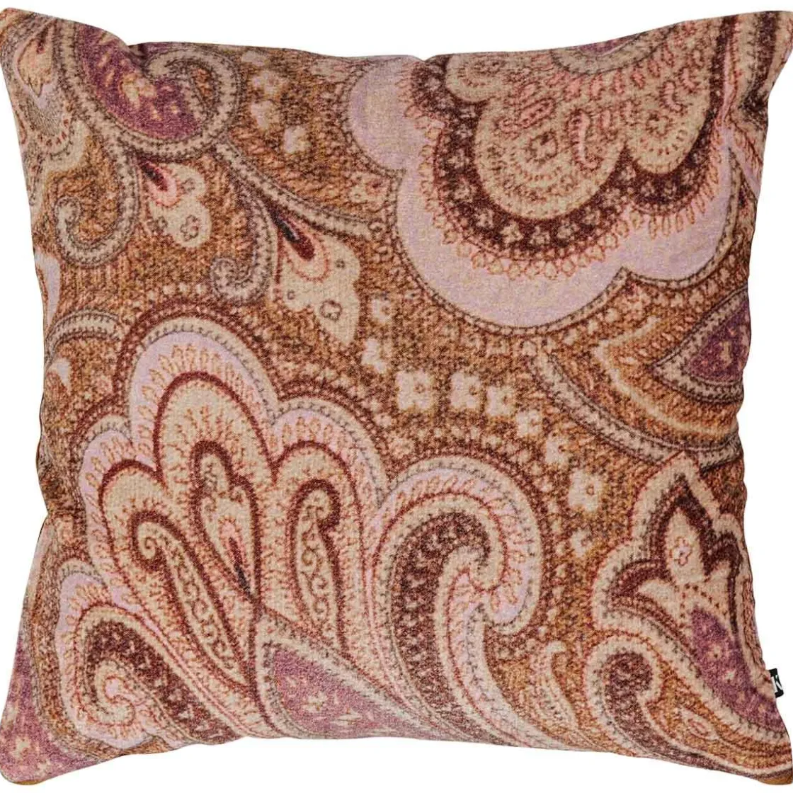 Velur pute med paisley mønster. Fargene går i rolig rosa og brunt, og gir puten et varmt uttrykk som passer ekstra godt til sesongen. Kombiner gjerne med flere i velur, eller miks inn andre teksturer som lin og bomull.