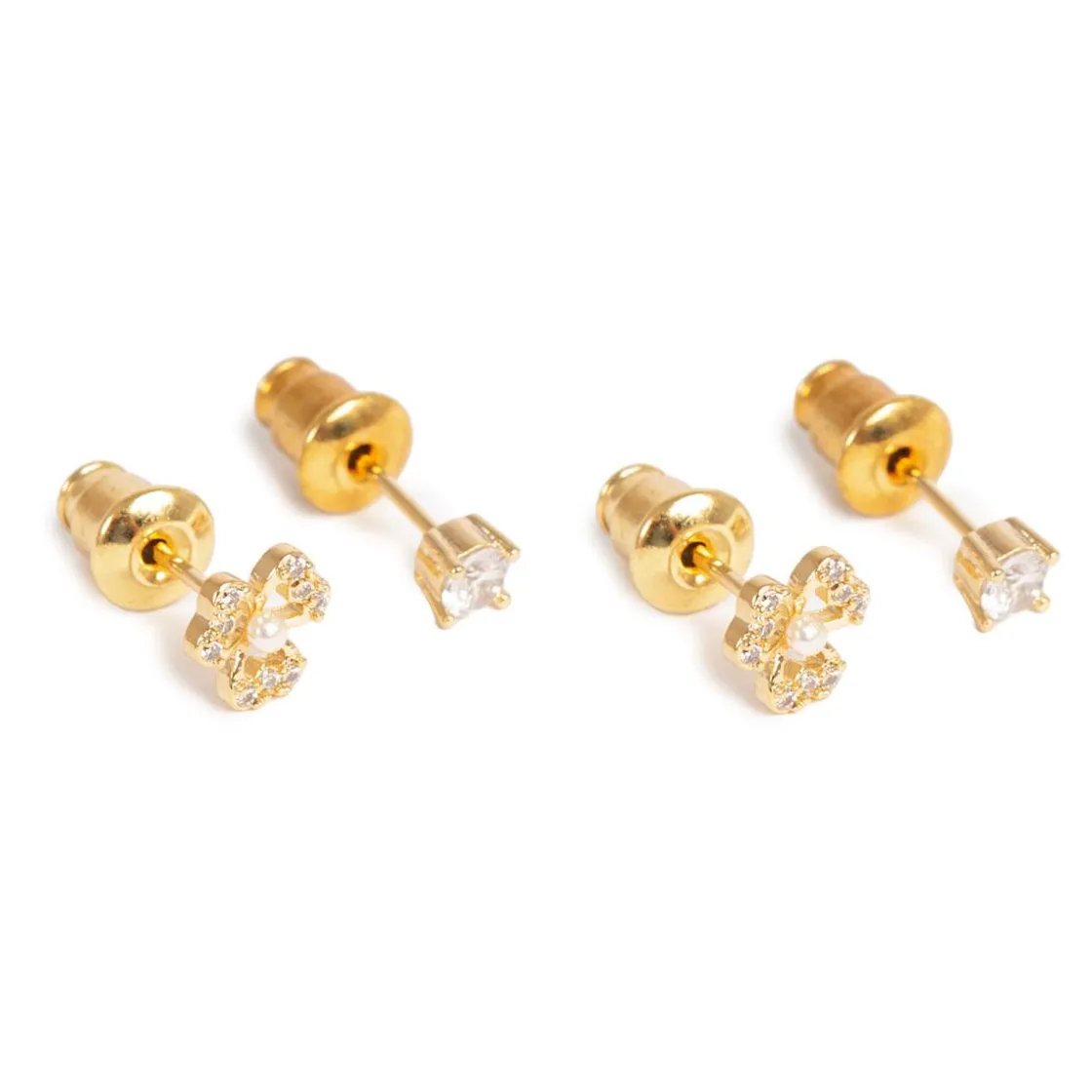 Dobbelt-sett med øredobber med detaljer som perler og en liten glitrende kløver. Helt perfekt når du har mer enn ett hull i øret.