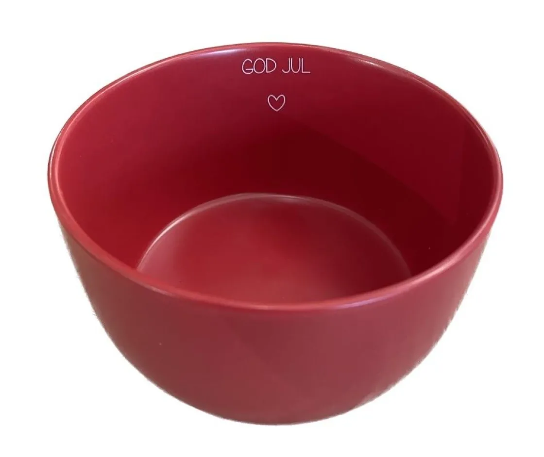 Rød og fin skål med tekst God jul og et lite hjerte inne i skålen. Perfekt til julens søtsaker, nøtter, grøt eller riskremen på julaften.