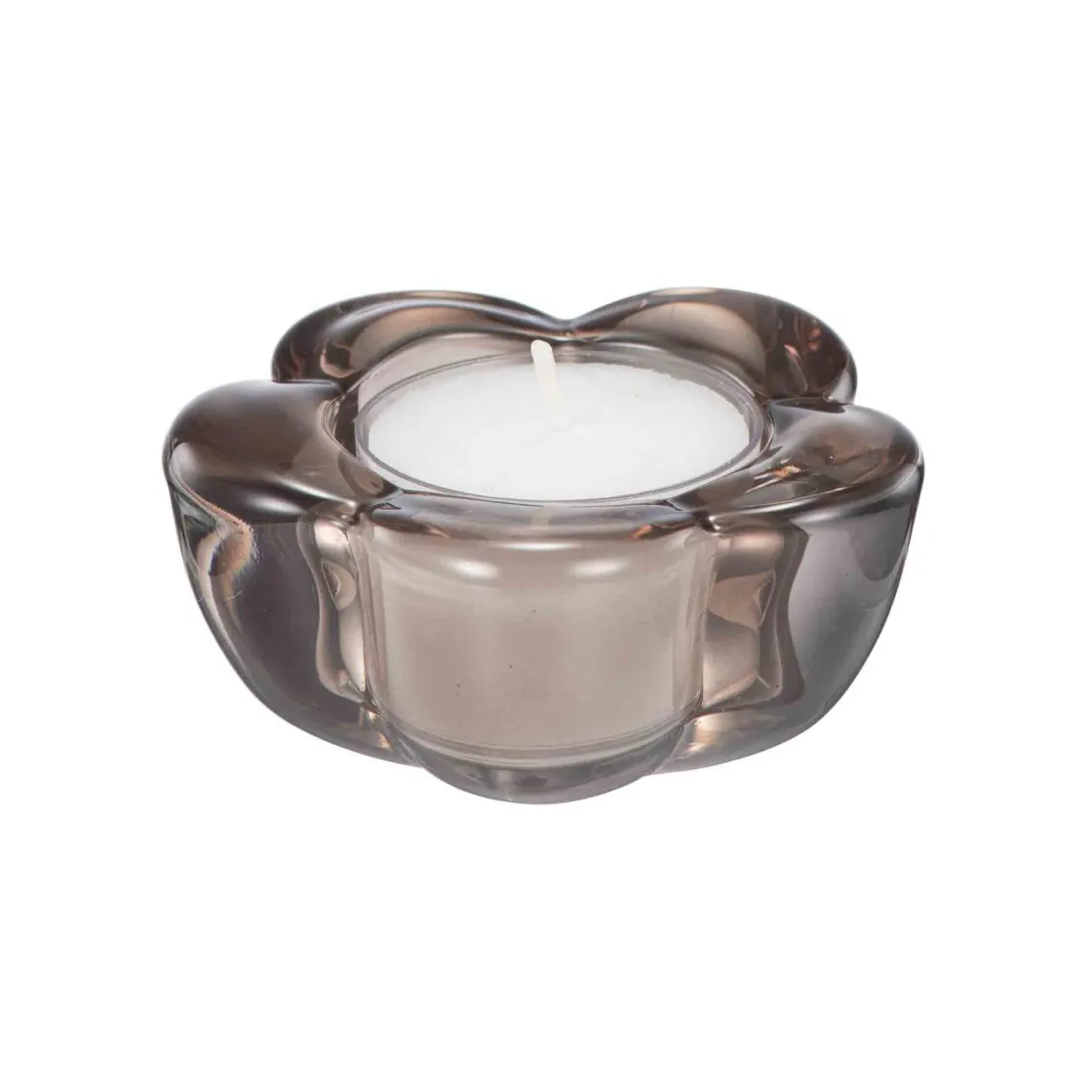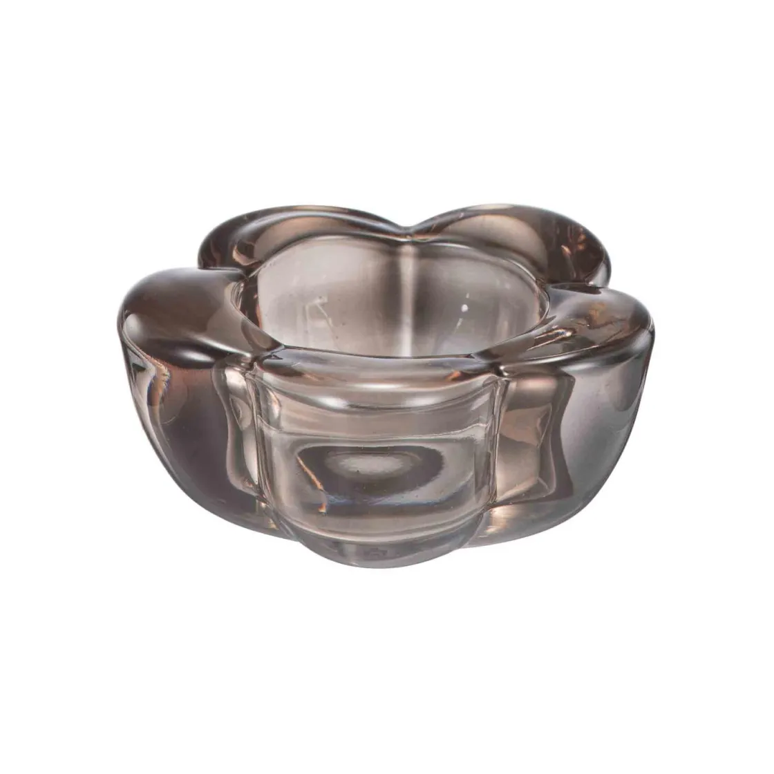 En lysestake som kombinerer enkelhet med eleganse. Den blomstformede designen i farget glass gir et mykt uttrykk og passer perfekt for telys. Den subtile fargen gjør den lett å style i alle typer interiør, enten på spisebordet, et sidebordet eller i vinduskarmen. Perfekt til rolige kvelder eller som et tillegg til et pyntet bord.