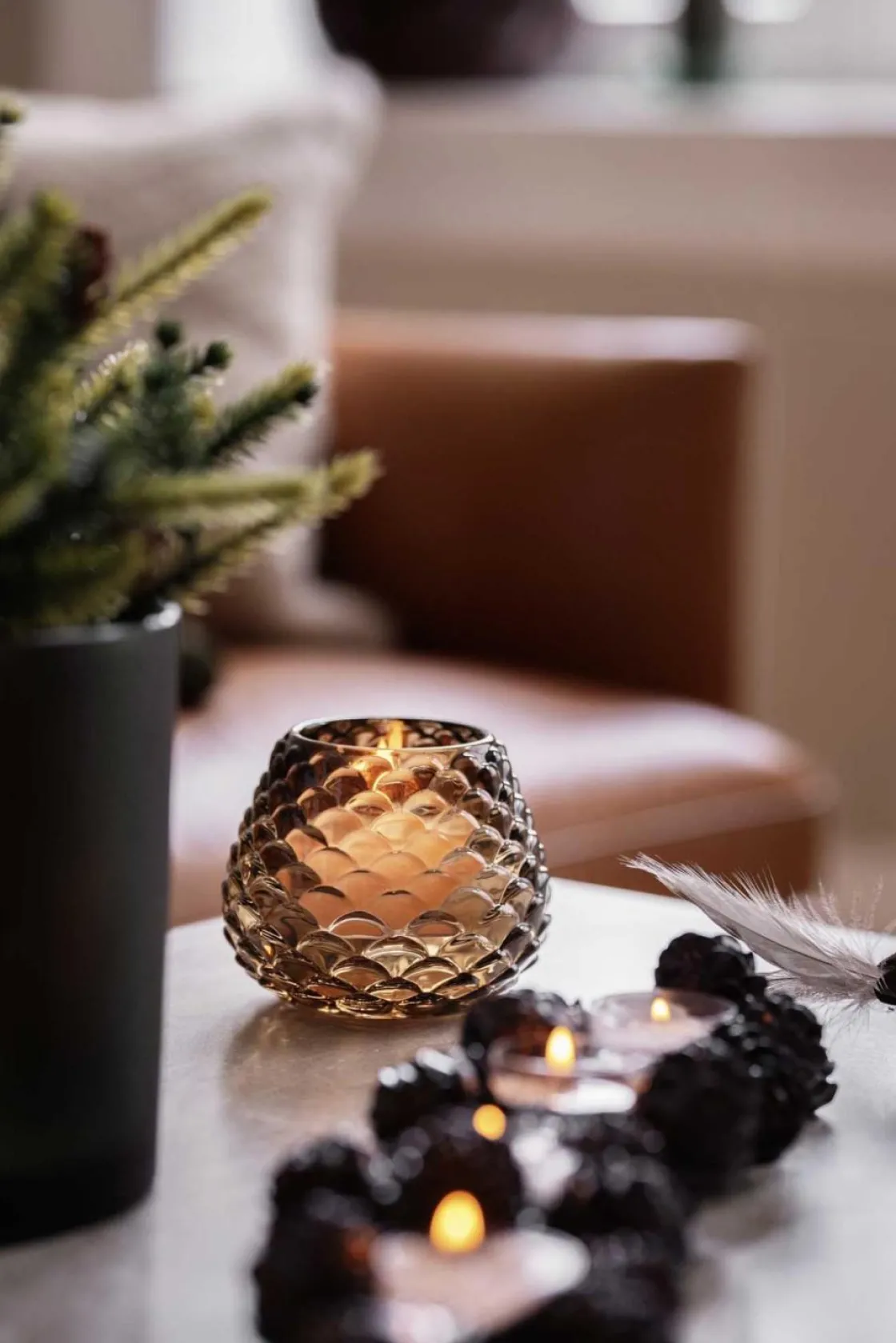 Bring naturens skjønnhet inn i hjemmet ditt med vår telysholder formet som en kongle. Denne sjarmerende telysholderen er inspirert av skogens rolige atmosfære og tilfører en naturlig og rustikk følelse til enhver setting.