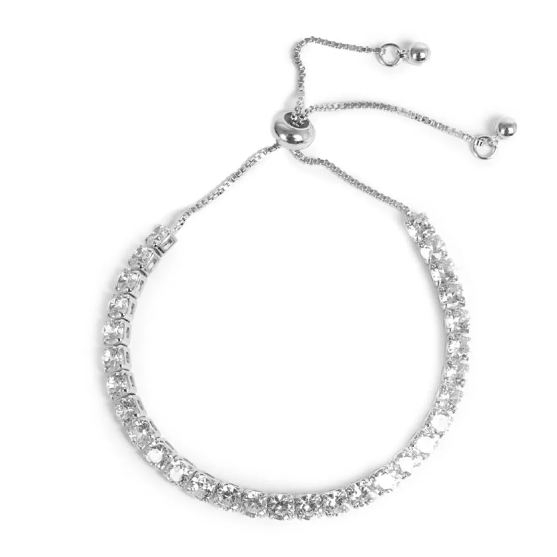 Et kjempekult armbånd, sølvbelagt stål med krystall-steiner, som er justerbart med en dekorativ lenke. Virkelig et spennende blikkfang rundt håndleddet.