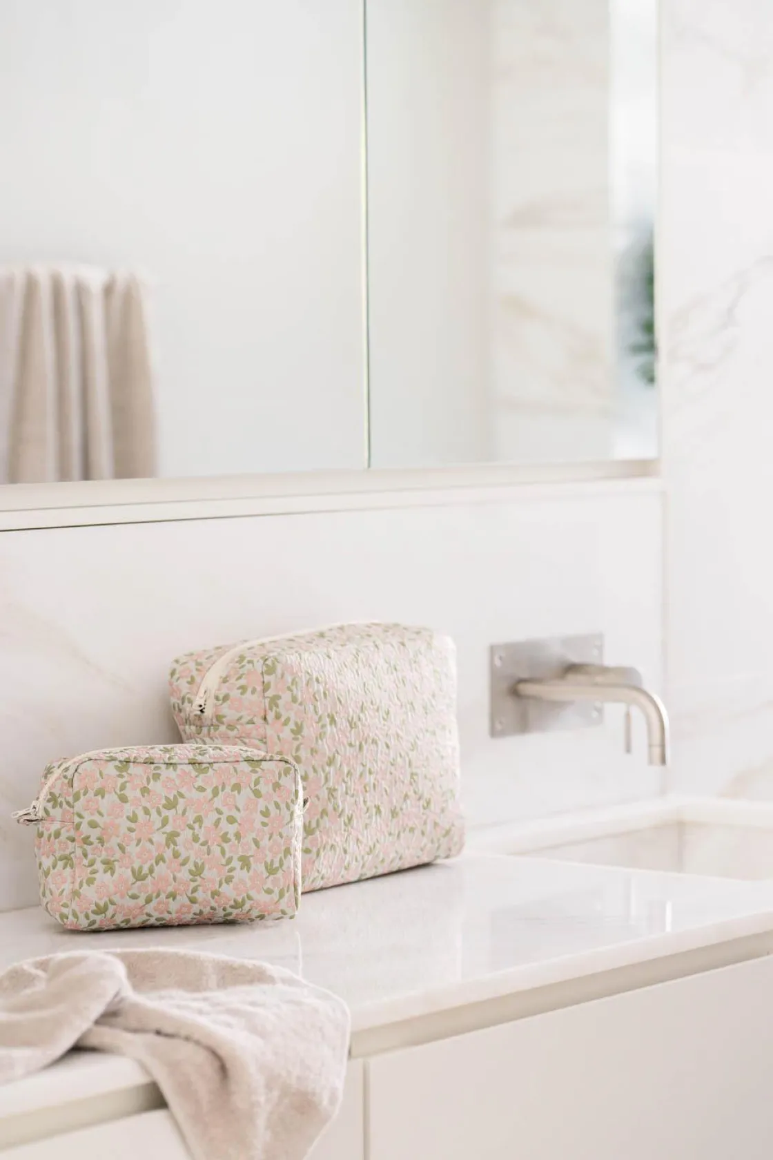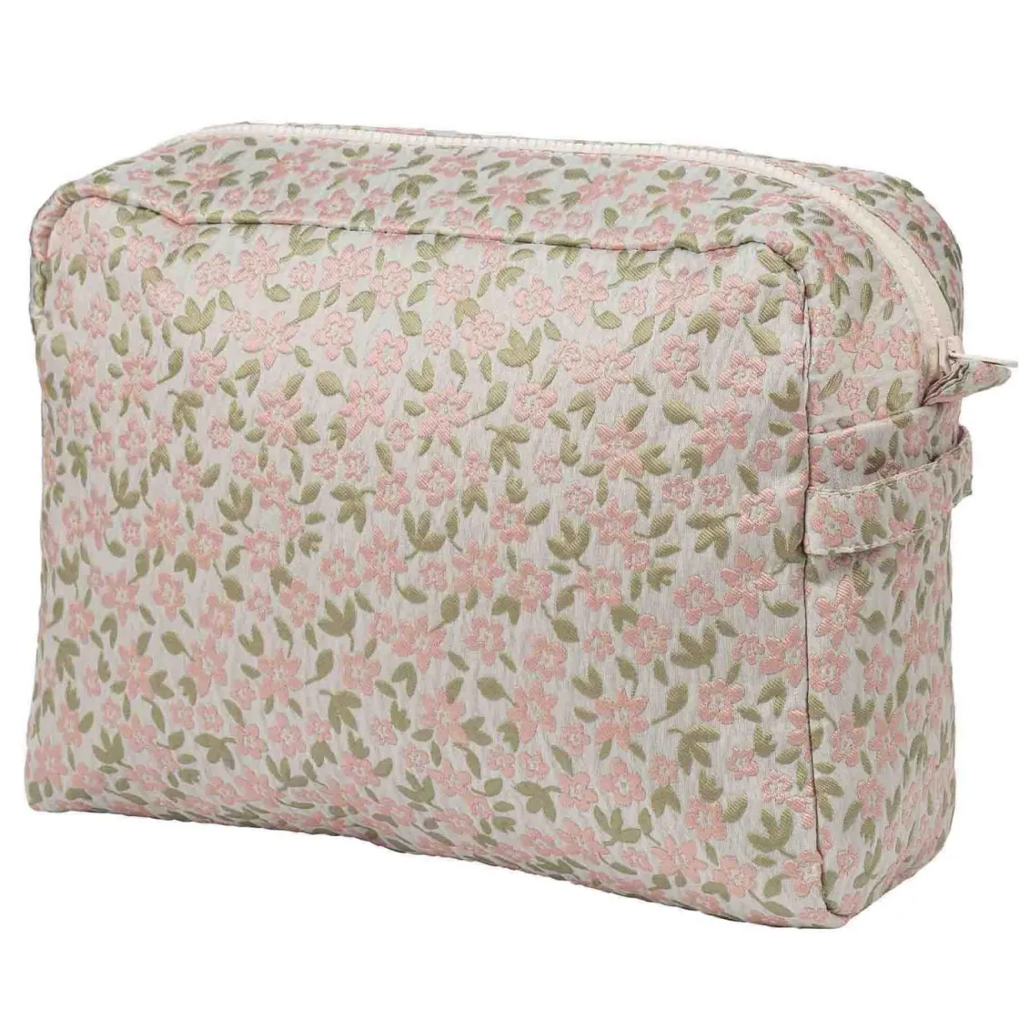 Toalettmappe Nanna på 30 cm gir plass til det meste du trenger, enten det er til hverdagsbruk eller på reise. Med sitt delikate blomstermønster passer den fint både på badehyllen og i kofferten. Perfekt som gave til noen som setter pris på orden med et hint av eleganse.